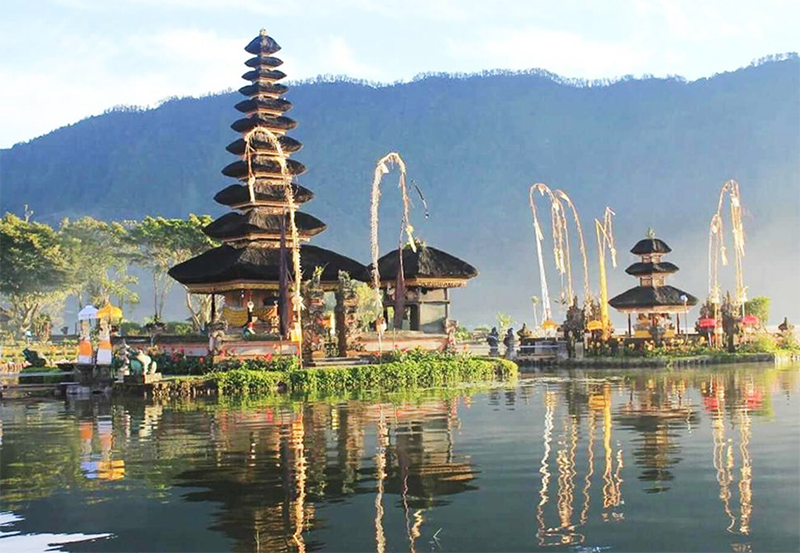 Bali Ulun Danu Beratan shrine is dedicated to the lake goddess Ida Batari Dewi Ulun Danu and is located on the lip of a big crater. The most important shrines are Meru’s (pagodas) dedicated to the lake goddess and the gods of Bali’s two greatest volcanoes, Mount Batur and Mount Gunung Agung.